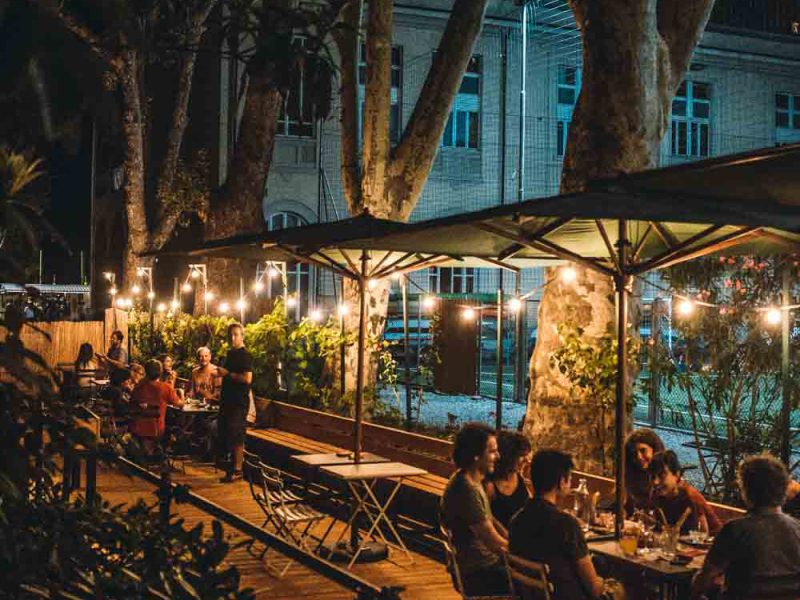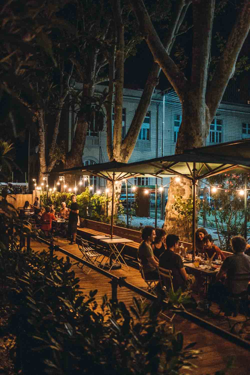 Per il progetto illuminotecnico abbiamo curato il contesto esterno, dall’illuminazione del percorso carrabile e pedonale con paletti RZB, decorando l’area dedicata ai tavoli con catenarie da esterno Creative Cables; per il prospetto del fabbricato è stato usata la lanterna RZB.