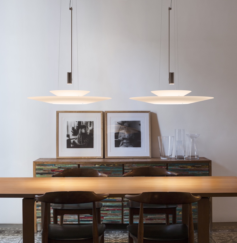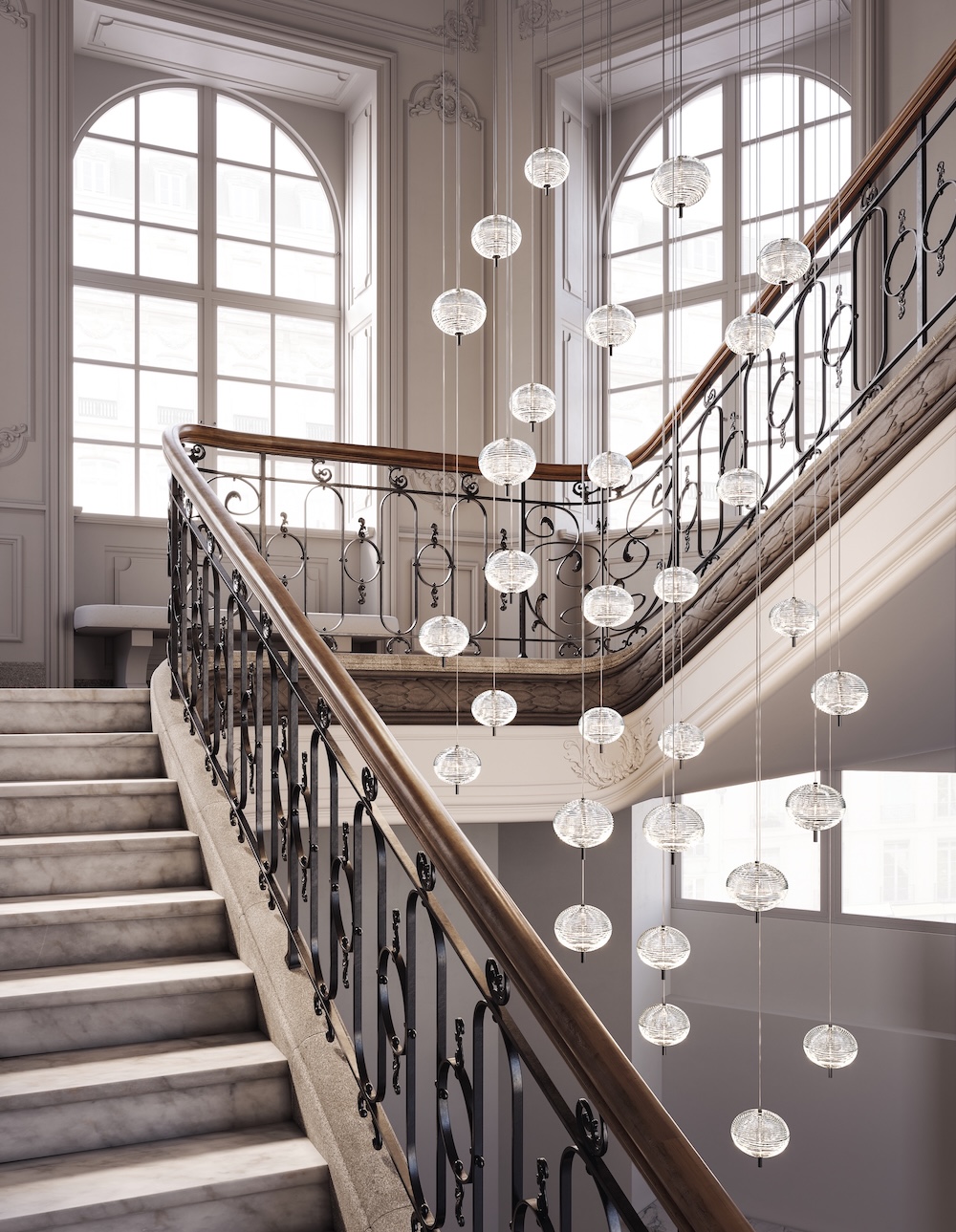 Sospensioni eteree, a pendolo, a grappolo e in tantissime altre varianti, per illuminare verso il centro terra. Sono tutte bellissime le collezioni che abbiamo selezionato e ogni luce caratterizza l'ambiente con la sua presenza imponente o con la sua leggerezza e impercettibilità.